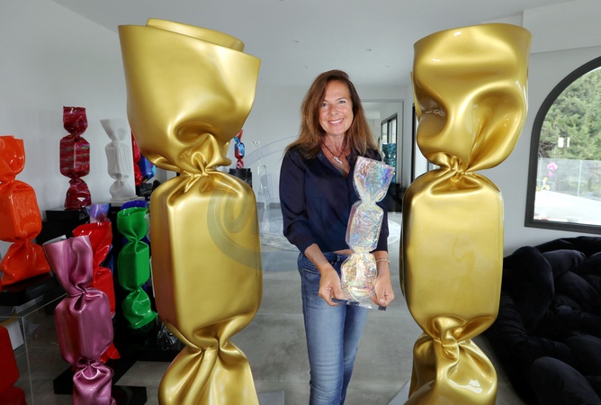 Exclusif - Rendez-vous avec l'artiste contemporaine Laurence Jenkell "JENK" (Chevalier des Arts et des Lettres) à son domicile à Vallauris, dans le département des Alpes-Maritimes, en région Provence-Alpes-Côte d'Azur, France, le 5 octobre 2021. © Franz Chavaroche/Bestimage No Web pour la Belgique et la Suisse Exclusive - Rendezvous with French contemporary artist Laurence Jenkell "JENK" (Chevalier des Arts et des Lettres) at her home in Vallauris, Alpes-Maritimes department, Provence-Alpes-Côte d'Azur region, France, on October 5, 2021.