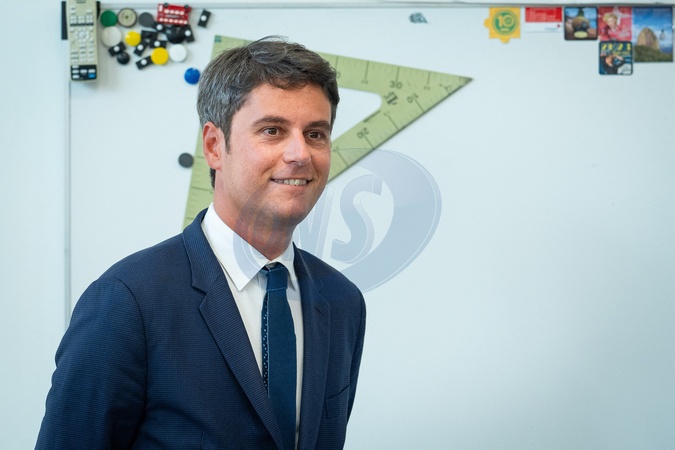Gabriel Attal, Premier ministre, lors de sa visite à l'école élémentaire Jean de la Fontaine d'issy Les Moulineaux, pour la rentrée scolaire