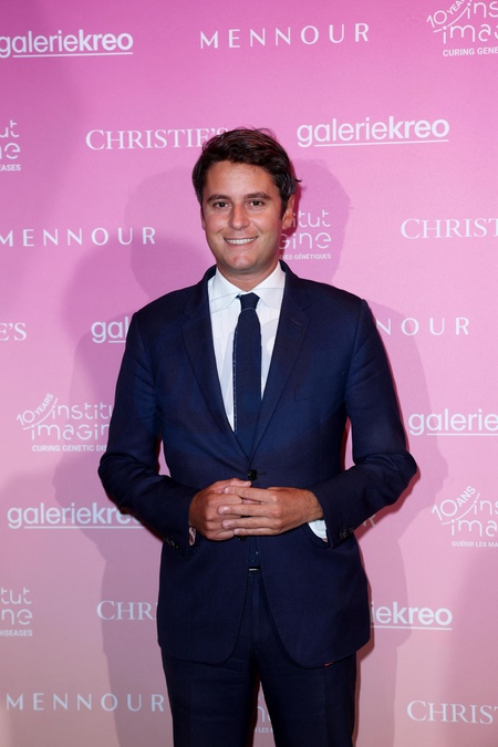 Info - Gabriel Attal, alors ministre de l'Education nationale, a joué son propre rôle dans la série "Askip" (France Télévisions) - Gabriel Attal lors de la soirée de gala "Heroes for Imagine" qui a permis de récolter dix millions d'euros au profit de la recherche contre les maladies génétiques à Paris le 23 septembre 2024. Depuis sa création en 2015, ce gala organisé tous les deux ans au cœur de l'Institut, propose à la vente des œuvres et des moments d'exception uniques pour soutenir les chercheurs et médecins de l'Institut Imagine, qui œuvrent au quotidien pour comprendre et guérir les maladies génétiques. Cette vente caritative est fondamentale pour l'avenir d'Imagine. Elle permet d'accélérer ses grands projets stratégiques, de conforter son attractivité, et de répondre aux besoins de la recherche en termes d'équipements et de technologies de pointe, comme en recrutement de talents. En quatre éditions, HEROES for Imagine a permis de lever plus de 22 millions d'euros. Et 2024 est une année toute particulière pour l'Institut Imagine qui fête ses 10 ans mais aussi la cinquième édition d'Heroes, actuellement en pleine préparation! "Grâce à Heroes, la recherche sur les maladies génétiques s'accélère, quels que soient les obstacles, au bénéfice des enfants malades et de leurs familles. Avec virtuosité et engagement, les chercheurs et les médecins de l'Institut Imagine, pratiquent la meilleure science d'aujourd'hui pour inventer la meilleure médecine de demain" © Dominique Jacovides / Bestimage Heroes for Imagine' gala evening to raise ten million euros for research into genetic diseases in Paris on 23 September 2024.