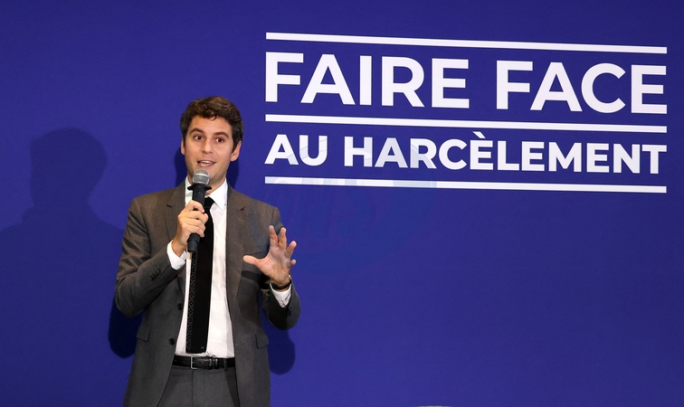 Info - Gabriel Attal, alors ministre de l'Education nationale, a joué son propre rôle dans la série "Askip" (France Télévisions) - Gabriel Attal - G.Attal lance sa fondation "Faire Face", contre le harcèlement scolaire, au Philanthro-Lab à Paris, le 6 novembre 2024. A cette occasion, l'ancien Premier ministre était entouré d'Ophélie Meunier, Béatrice Le Blay, dont le fils Nicolas s'est suicidé en septembre 2023, Elian Potier, ancienne victime, la ministre de l'Éducation Anne Genetet. © Dominique Jacovides / Bestimage G. Attal launches his foundation "Faire Face", against school bullying, at the Philanthro-Lab in Paris, on November 6, 2024. On this occasion, the former Prime Minister was surrounded by Ophélie Meunier, Béatrice Le Blay, whose son Nicolas committed suicide in September 2023, Elian Potier, former victim, the Minister of Education Anne Genetet.
