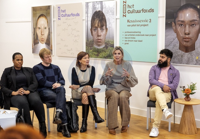 Queen Máxima pays working visit to young cultural creators against polarization at Fonds ZOZ, Amsterdam, The Netherlands