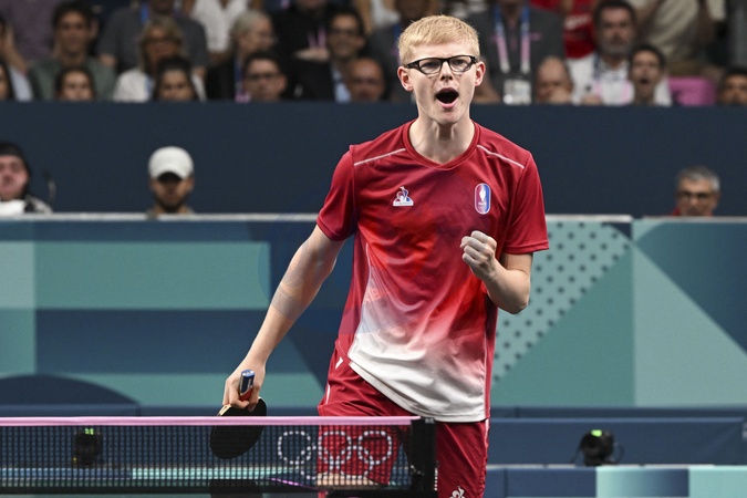 Félix Lebrun se qualifie pour les demi-finales aux épreuves de tennis de table lors des Jeux Olympiques de Paris 2024 (JO) à l'Arena Paris Sud