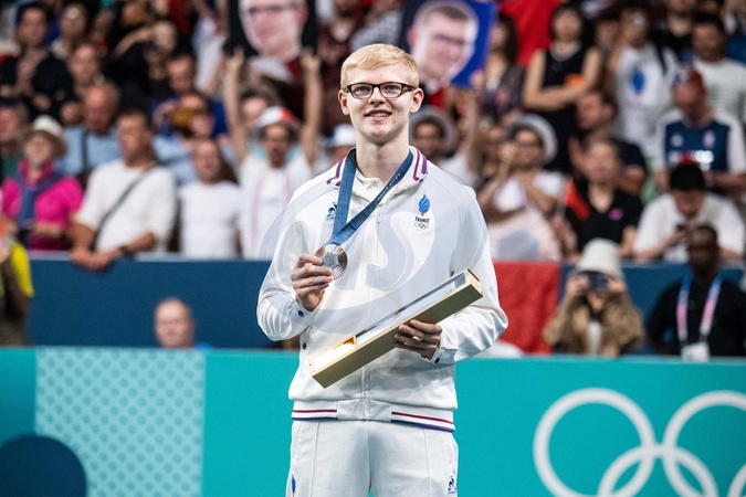 Info - Le pongiste Félix Lebrun atteint la 4ème place du classement mondial - Felix Lebrun (FRA), simple men's table tennis, Podium Simple men's during the Olympic Games Paris 2024