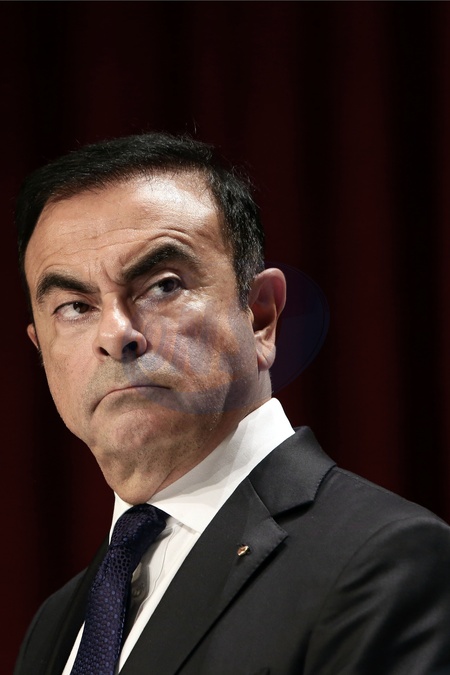 Carlos Ghosn et Emmanuel Macron lors d'une conférence de presse pour l'inauguration d'une chaine de production sur le site de Renault Sandouville.