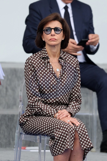 Info - Rachida Dati et Carlos Ghosn visés par un procès pour corruption, à la demande du parquet national financier - Rachida Dati en tribune présidentielle lors de la cérémonie du 144ème défilé militaire du 14 juillet, jour de la Fête Nationale, avenue Foch à Paris, France, le 14 juillet 2024. © Dominique Jacovides/Bestimage French President, his wife and Ministers during the Bastille Day parade, in Paris, France, on July 14, 2024.