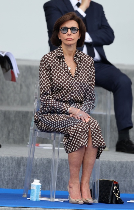 Info - Rachida Dati et Carlos Ghosn visés par un procès pour corruption, à la demande du parquet national financier - Rachida Dati en tribune présidentielle lors de la cérémonie du 144ème défilé militaire du 14 juillet, jour de la Fête Nationale, avenue Foch à Paris, France, le 14 juillet 2024. © Dominique Jacovides/Bestimage French President, his wife and Ministers during the Bastille Day parade, in Paris, France, on July 14, 2024.