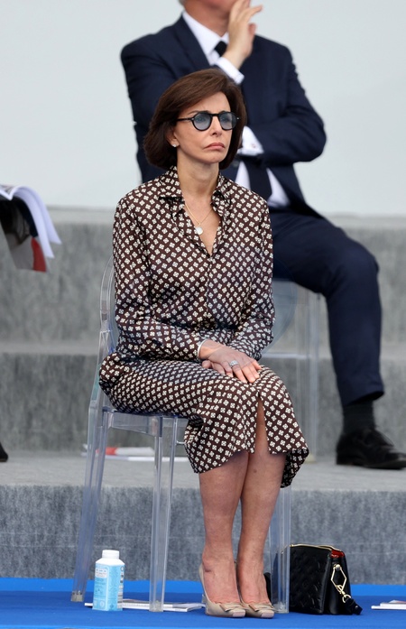 Info - Rachida Dati et Carlos Ghosn visés par un procès pour corruption, à la demande du parquet national financier - Rachida Dati en tribune présidentielle lors de la cérémonie du 144ème défilé militaire du 14 juillet, jour de la Fête Nationale, avenue Foch à Paris, France, le 14 juillet 2024. © Dominique Jacovides/Bestimage French President, his wife and Ministers during the Bastille Day parade, in Paris, France, on July 14, 2024.