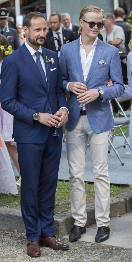 Info - Arrestation de Marius Borg Hoiby, fils de la princesse de Norvège soupçonné de viol - Le prince Haakon, Marius Borg Hoiby - La famille royale de Norvège lors de la garden party du jubilé des 25 ans de règne du roi Harald de Norvège à Trondheim le 23 juin 2016. King Harald celebrates his 25 year jubilee as King of Norway in with a visit with King's Ship Norge and other members of the Royal Family in Trondheim
