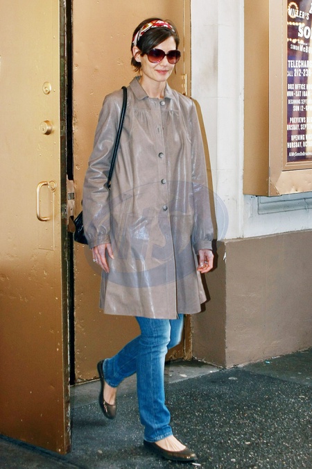 Katie Holmes wychodzi z teatru Schoenfeld, Nowy Jork