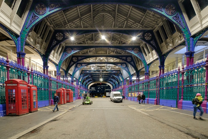 Phone boxes in Grand Avenue, West Smithfield meat market in the City of London.Considerably quieter than it used to be. It is believed the market may move to east London. The Museum of London is moving into part of the market in the future.London. United Kingdom. 22 February 2024, Credit:Mark Fairhurst / Avalon