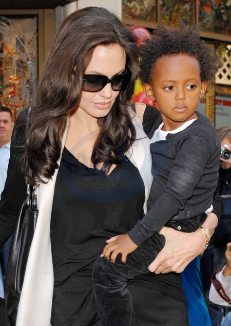 Angelina Jolie z dziecmi wychodzi ze sklepu Lee Art Shop, Nowy Jork