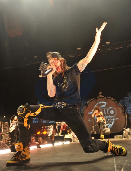 Info - Shaka Ponk a donné son dernier concert avant d'arrêter la musique pour des raisons écologiques - Shaka Ponk ( SHK PNK ) - Paris le, 06 01 2013 - Shaka Ponk ( SHK PNK ) en concert au palais omnisport de Paris Bercy