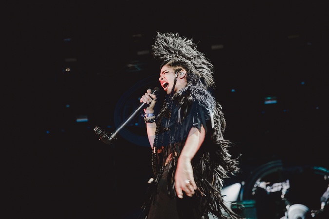 Le groupe de musique d'électro-rock Shaka Ponk en concert pour les vingt ans de Solidays 2018 à l'hippodrome de Longchamp à Paris