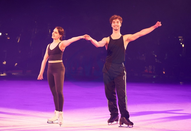 Info - Gabriella Papadakis et Guillaume Cizeron mettent un terme à leur carrière - Semi-exclusif - Gabriella Papadakis et Guillaume Cizeron en pleine répétition avant le spectacle - Première parisienne du spectacle "Aurore" à l'occasion des 80 ans d'Holiday on Ice au Dôme de Paris le 29 février 2024. © Coadic Guirec/bestimage