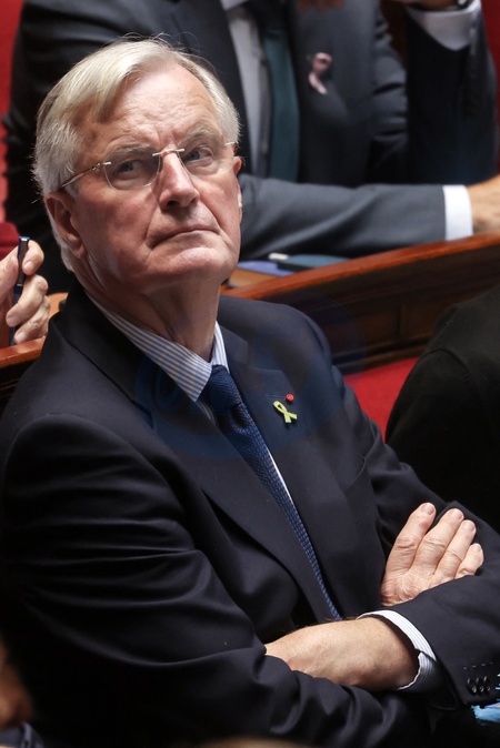 Info - Michel Barnier désavoué par la motion de censure à l'Assemblée nationale, contraint le Premier ministre à démissionner - Info - Michel Barnier a été opéré d'une lésion cervicale - Le premier ministre Michel Barnier - Séance de questions au gouvernement à l'Assemblée nationale, à Paris, France, le 8 octobre 2024 © Stéphane Lemouton/Bestimage Question session to the government at the national assembly, in Paris, France, on October 8, 2024.