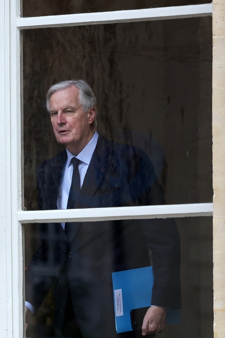 Info - Michel Barnier désavoué par la motion de censure à l'Assemblée nationale, contraint le Premier ministre à démissionner - Le Premier ministre, Michel Barnier reçoit les responsables politiques de la majorité à Matignon, Paris, le 26 novembre 2024. © Stéphane Lemouton / Bestimage Prime Minister Michel Barnier receives political leaders from the majority at Matignon, on November 26th, 2024.