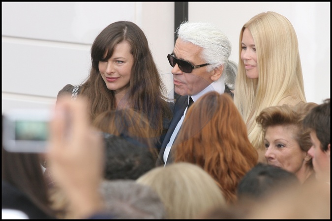Milla Jovovich, Karl Lagerfeld na pokazie Chanel, Francja