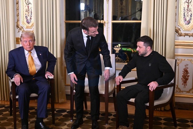 Prezydent Francji Emmanuel Macron przyjmuje swoich amerykańskich odpowiedników Donalda Trumpa i Ukraińca Wołodymyra Zełenskiego w Pałacu Prezydenckim Elizejskim w Paryżu