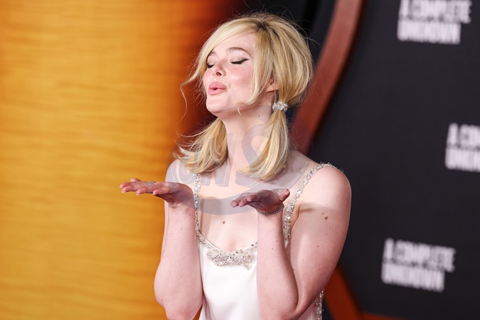 HOLLYWOOD, LOS ANGELES, CALIFORNIA, USA - DECEMBER 10: Elle Fanning wearing a custom Gucci look arrives at the Los Angeles Premiere Of Searchlight Pictures' 'A Complete Unknown' held at the Dolby Theatre on December 10, 2024 in Hollywood, Los Angeles, California, United States., Credit:Xavier Collin / Avalon