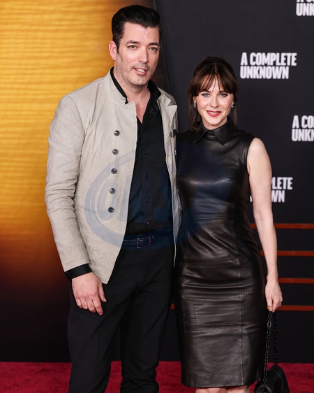 HOLLYWOOD, LOS ANGELES, CALIFORNIA, USA - DECEMBER 10: Jonathan Scott and Zooey Deschanel arrive at the Los Angeles Premiere Of Searchlight Pictures' 'A Complete Unknown' held at the Dolby Theatre on December 10, 2024 in Hollywood, Los Angeles, California, United States., Credit:Xavier Collin / Avalon