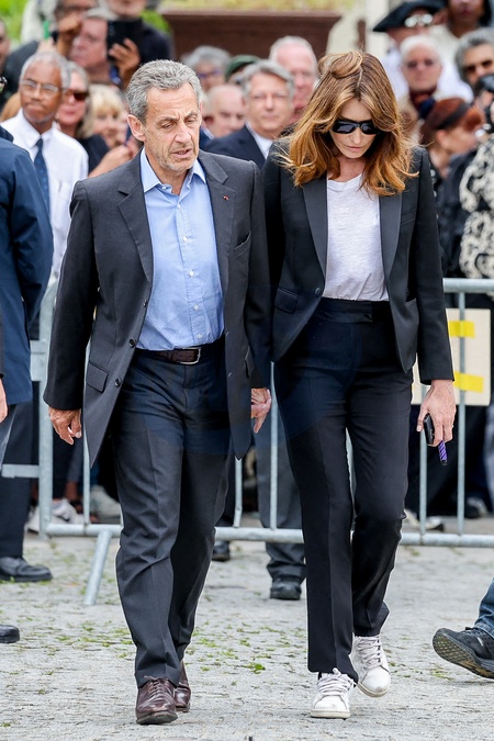 Info - Nicolas Sarkozy définitivement condamné à un an ferme sous bracelet électronique dans l'affaire des écoutes. L'ancien président annonce saisir la Cour européenne des droits de l'Homme - José Pietroboni, chef du protocole de l'Elysée, Nicolas Sarkozy et sa femme Carla Bruni - Arrivées aux obsèques de l'auteure-compositrice-interprète et actrice française Françoise Hardy au crématorium du cimetière du Père-Lachaise à Paris, France, le 20 juin 2024. © Jacovides-Moreau/Bestimage Arrivals at the funeral of French singer-songwriter and actress Françoise Hardy at Père-Lachaise Cemetery in Paris, France, on June 20, 2024.