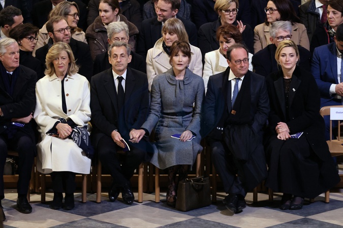 Info - Nicolas Sarkozy définitivement condamné à un an ferme sous bracelet électronique dans l'affaire des écoutes. L'ancien président annonce saisir la Cour européenne des droits de l'Homme - Michel Barnier, sa femme Isabelle Altmayer, Nicolas Sarkozy, sa femme Carla Bruni, François Hollande et sa femme Julie Gayet - Cérémonie de réouverture de la cathédrale Notre-Dame de Paris, le 7 décembre 2024. Joyau de l'art gothique, lieu de culte et de culture, symbole universel de la France et de son histoire, la cathédrale de Notre-Dame de Paris rouvre ses portes les 7 et 8 décembre, cinq ans après le terrible incendie qui l'avait ravagée le 15 avril 2019. © Dominique Jacovides / Bestimage Reopening ceremony of Notre-Dame Cathedral in Paris, on December 7, 2024. A jewel of Gothic art, a place of worship and culture, a universal symbol of France and its history, Notre-Dame Cathedral in Paris will reopen its doors on December 7 and 8, five years after the terrible fire that ravaged it on April 15, 2019.