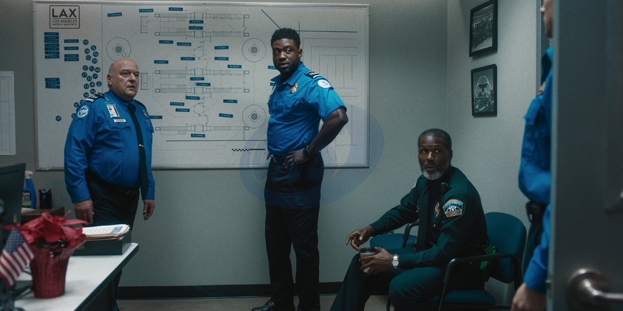 Dean Norris, Sinqua Walls, Curtiss Cook, Taron Egerton, "Carry-On" (2024)., Credit:Netflix / Avalon