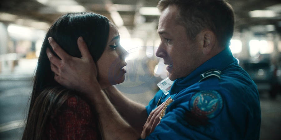 Sofia Carson, Taron Egerton, "Carry-On" (2024)., Credit:Netflix / Avalon