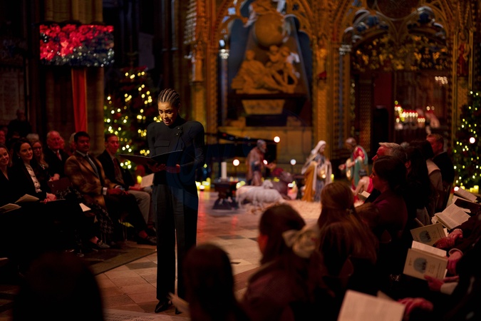 Sophie Okonedo gives a reading in the nave during the Together At Christmas carol service at Westminster Abbey in London., Credit:Jordan Pettitt / Avalon