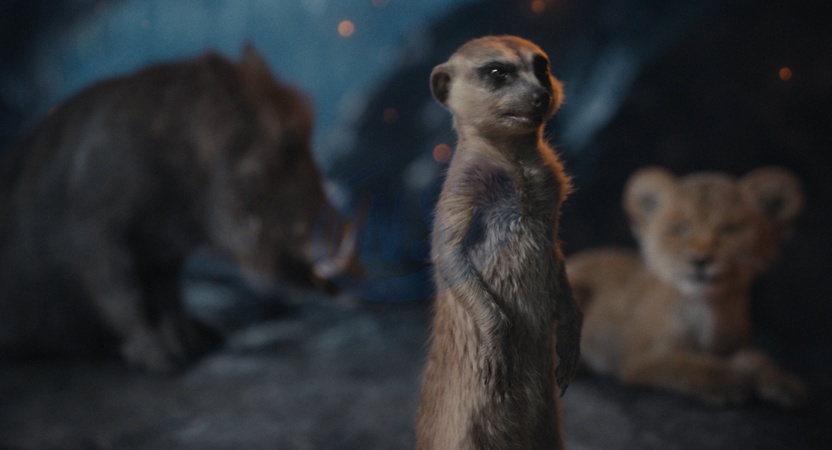 (Center): Timon (voiced by Billy Eichner) in Disney's live-action "Mufasa: The Lion King" (2024)., Credit:Disney / Avalon