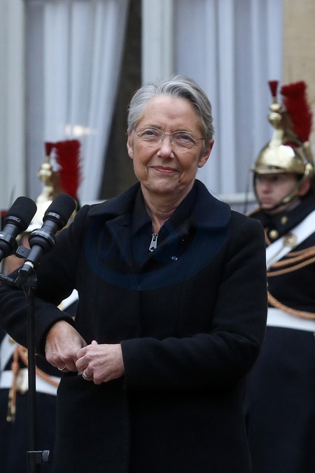 Passation de pouvoirs entre l'ancienne Première ministre Elisabeth Borne et le nouveau Premier ministre Gabriel Attal à l'hôtel de Matignon à Paris