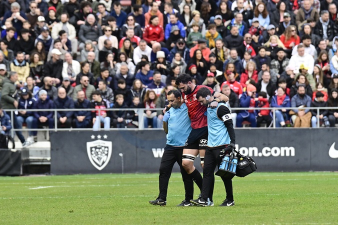 Le Rugby Club Toulonnais reçoit le Racing 92 dans le cadre de la 14e journée de Top 14. Sortie sur blessure de Charles Ollivon (RCT) au stade Mayol à Toulon, France, le 5 janvier 2025. © William Cannarella/Psnewz/Bestimage French Top 14 rugby union match between RC Toulon and Racing92 at the Mayol stadium in Toulon, southeastern France, on January 4, 2025.