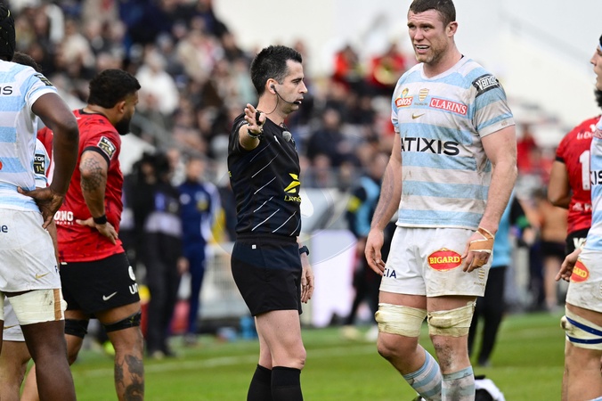 Le Rugby Club Toulonnais reçoit le Racing 92 dans le cadre de la 14e journée de Top 14. Ludovic Cayre, arbitre principal de la rencontre. au stade Mayol à Toulon, France, le 5 janvier 2025. © William Cannarella/Psnewz/Bestimage French Top 14 rugby union match between RC Toulon and Racing92 at the Mayol stadium in Toulon, southeastern France, on January 4, 2025.
