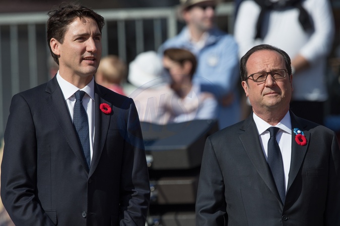 François Hollande et Justin Trudeau lors de la cérémonie d'inauguration du Coquelicot de la Paix à Arras