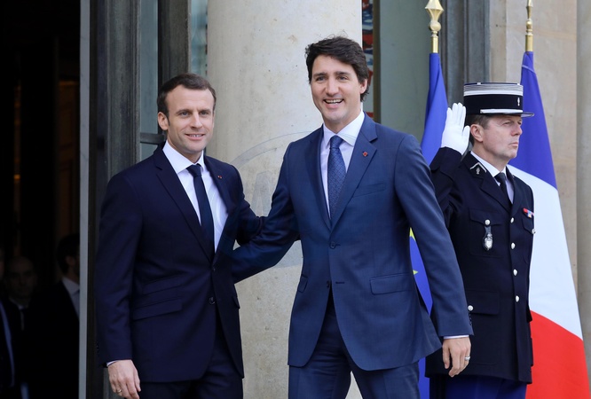 Le président de la République, Emmanuel Macron, recoit Justin Trudeau, Premier ministre du Canada au Palais de l'Elysée à Paris