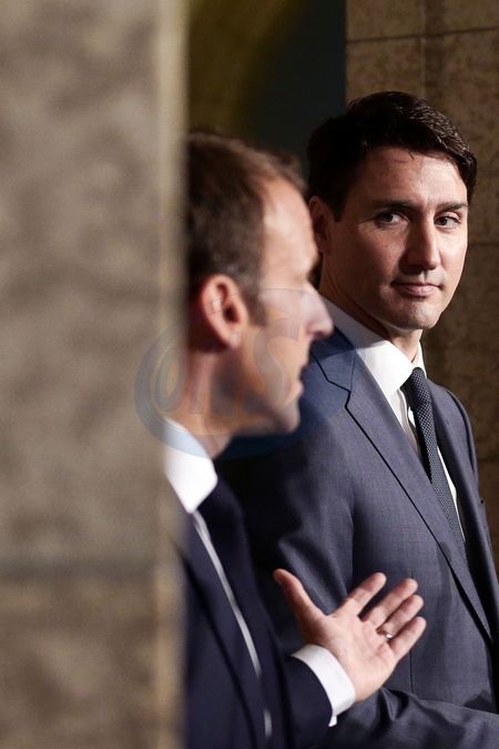 Conférence de presse commune du président Emmanuel Macron et du premier ministre Justin Trudeau au parlement d'Ottawa, Canada