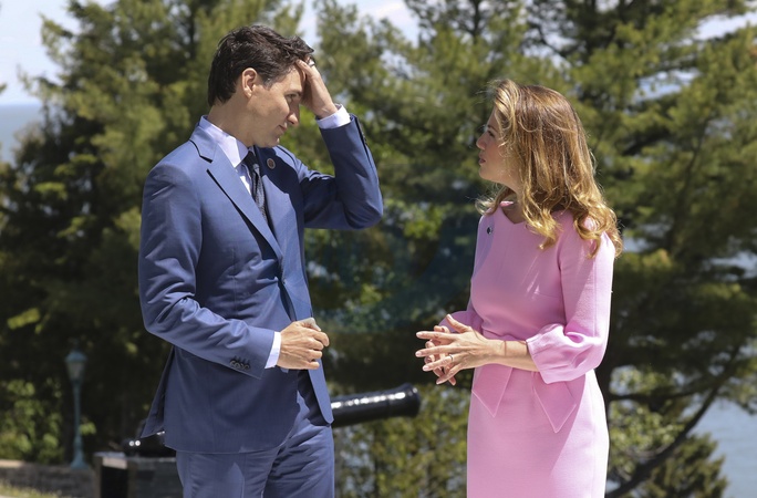 Pool - Justin Trudeau et sa femme accueillent Donald J. Trump dans le cadre du sommet du G7 au Canada