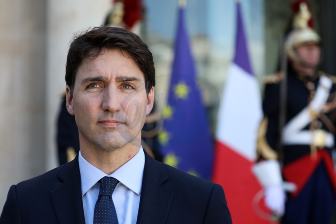 Le président de la république, Emmanuel Macron reçoit Justin Trudeau, Premier ministre du Canada, pour un déjeuner de travail au palais de l'Elysée