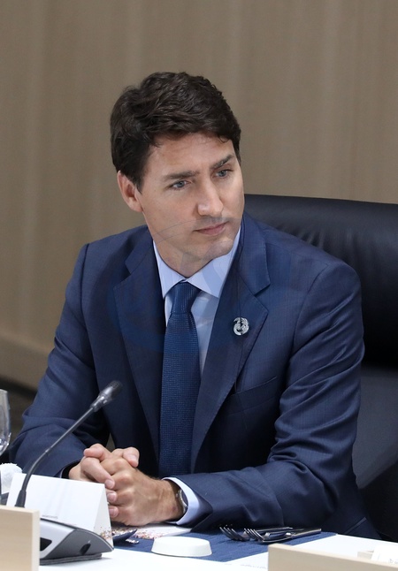 Info - Margaret Trudeau, la mère de Justin Trudeau, hospitalisée après un incendie à Montréal - Justin Trudeau (Premier Ministre du Canada) - 1ère séance de travail, sous la forme d'un déjeuner de travail, sur le thème "économie mondiale - commerce" au centre de congrès Intex Osaka lors du sommet du G20 à Osaka, Japon, le 28 juin 2019. © Dominique Jacovides/Bestimage 1st working session, in the form of a working luncheon, on the theme "World Economy - Trade" at the Intex Osaka Congress Center at the G20 Summit in Osaka, Japan, on June 28, 2019.