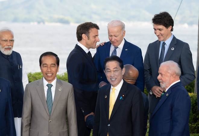Photo de famille des dirigeants du G7 et des pays invités lors du Sommet des dirigeants du G7 à Hiroshima