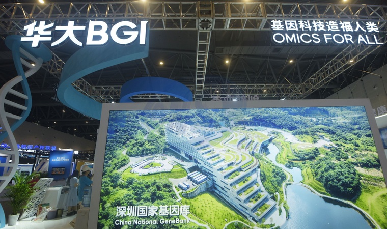 A view of the booth of BGI during a trade show in Hangzhou in east China's Zhejiang province Wednesday, Sept. 25, 2024. BGI Group has subsidiaries like MGI, BGI Genomics, and Forensic Genomics International., Credit:LONG WEI / Avalon