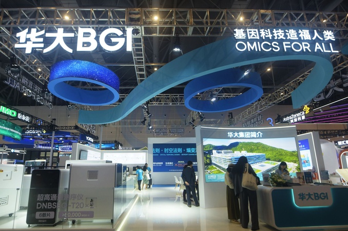 A view of the booth of BGI during a trade show in Hangzhou in east China's Zhejiang province Wednesday, Sept. 25, 2024. BGI Group has subsidiaries like MGI, BGI Genomics, and Forensic Genomics International., Credit:LONG WEI / Avalon