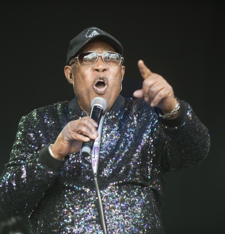 Sam Moore on stage with Staks at the Cornbury Festival 2019, Credit:B2820 / Avalon