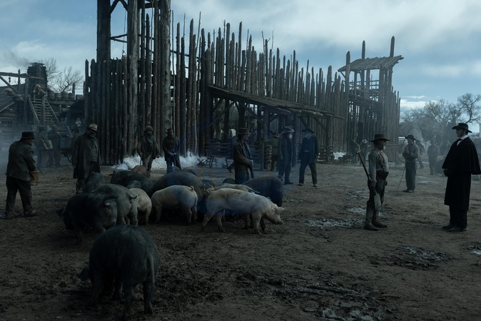 Nick Hargrove, Shea Whigham, Alex Breaux, "American Primeval" (2025)., Credit:Matt Kennedy / Avalon