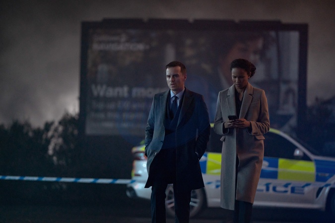 Andrew Scott, Fola Evans-Akingbola, "Back In Action" (2025)., Credit:Matt Towers/Netflix / Avalon