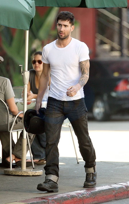 Adam Levine po lunchu zasiada na swoj motocykl w Los Angeles