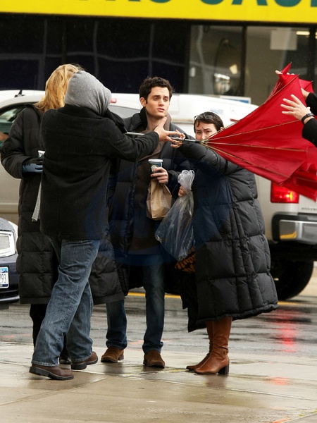 Blake Lively i Penn Badgley na planie "Gossip Girl" w Queens