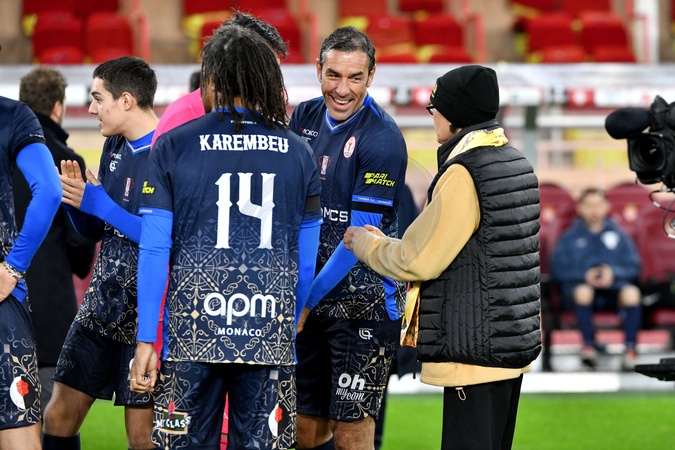 Christian Karembeu, Robert Pirès et la princesse Stéphanie de Monaco durant la cinquième édition de la Fight Aids Cup, un match de football caritatif au stade Louis II à Monaco, le 22 janvier 2025, qui oppose l'équipe du Cirque FC de la princesse Stéphanie et les Barbagiuans du prince Albert. Ce match de charité a pour but de soutenir Fight Aids Monaco, association qui lutte contre le virus du VIH, soutenue par l'AS Monaco, et dont la princesse Stéphanie en est la présidente. Dans l'équipe du prince, il y a notamment Patrice Evra, parrain de l'événement, Ludovic Giuly ou Youri Djorkaeff et en capitaine Louis Ducruet, ce qui n'a pas empeché la victoire par 5 buts à 4 de l'équipe du cirque, renforcée par la présence de Christian Karembeu, Franck Ribéry ou encore Robert Pirès. Ce 5e anniversaire a été également dédié à la mémoire de Jean Petit, légende du football monégasque et véritable icône des Barbagiuans, disparu le lendemain matin de la précédente édition, à 74 ans. © Bruno Bebert / Bestimage No Tabloïds fifth edition of the Fight Aids Cup, a charity football match at the Louis II stadium in Monaco on 22 January 2025, pitting Princess Stéphanie's Cirque FC team against Prince Albert's Barbagiuans. The aim of the charity match is to support Fight Aids Monaco, an association that fights the HIV virus, supported by AS Monaco, and of which Princess Stéphanie is president. The Prince's team included Patrice Evra, patron of the event, Ludovic Giuly and Youri Djorkaeff, and captained by Louis Ducruet, but this did not prevent the circus team from winning by 5 goals to 4, bolstered by the presence of Christian Karembeu, Franck Ribéry and Robert Pirès. This 5th anniversary was also dedicated to the memory of Jean Petit, Monegasque football legend and true Barbagiuan icon, who died the morning after the previous edition, aged 74.
