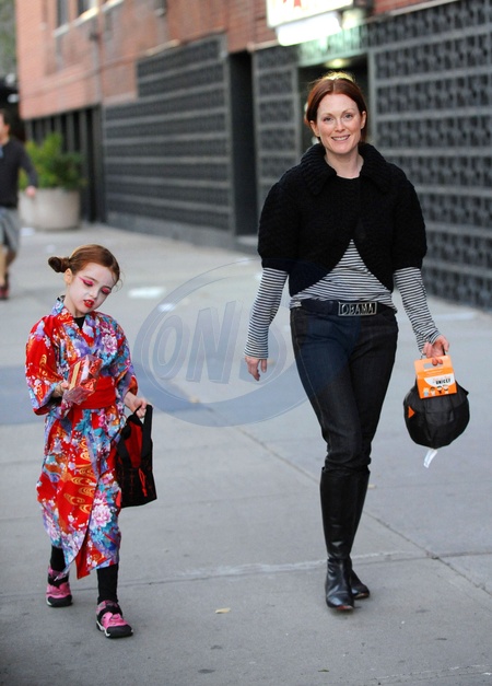 Julianne Moore z corka Liv Freundlich w drodze na halloween w Nowym Jorku