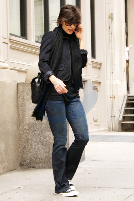 Katie Holmes wychodzi z teatru Schoenfeld, Nowy Jork